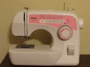 I am so excited!  The two machines together have all the bells and whistles a girl could ever wish for.  Can I say, free arm, ruffle foot, double needles, blind hems, and 59 other stitches!  I don’t even know what cording is, but I already know I love it!  Oh, am I ever swooning.