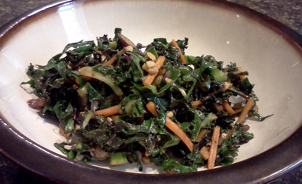 Little by little, I’ve been making changes by incorporating more greens into my diet and reducing the amount of grains i’ve been eating.  Which leads me to my current love affair, kale!  For those of you that don’t know, kale is the green that’s got it all.  Just to sum it up quickly it’s densely packed with fiber, vitamins, minerals and phytonutrients.  This little leaf has been shown to have anti-inflammatory properties, lower cholesteral and even prevent and fight cancers.  It is definitely worth the google if you would like to learn more.